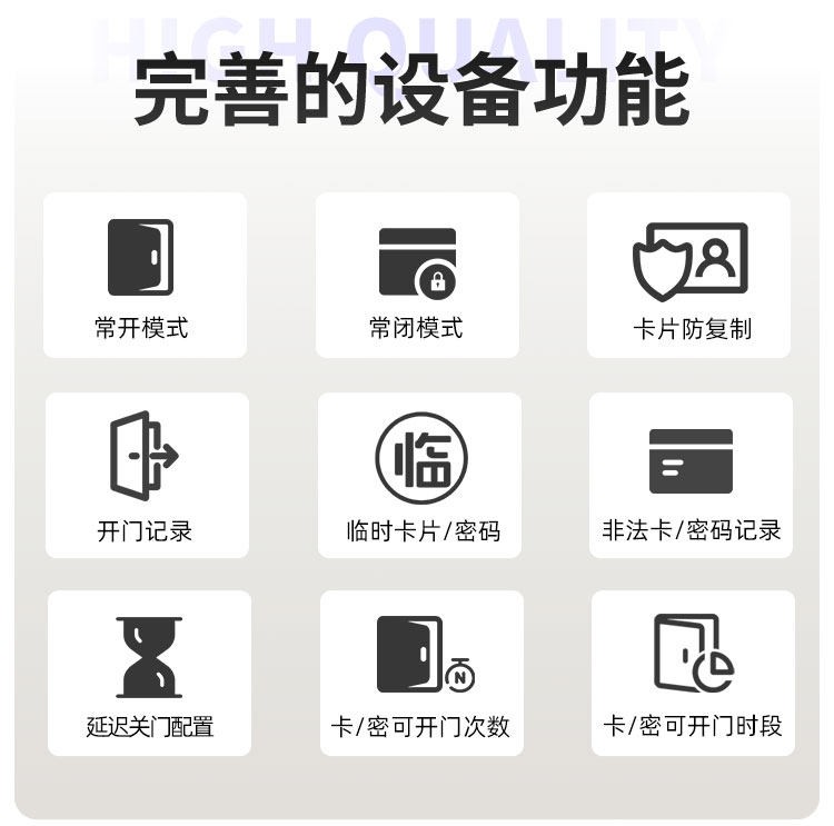 雅安这款智能门锁提供室内门锁和防盗门锁两种选择,其中室内门锁尺寸为 2806521mm,适配 5050 锁体;防盗门锁尺寸为 3657021mm,适配 6068 锁体,可满足不同场景的安装需求。它采用铝合金一体成型搭配钢化玻璃面板打造,兼具坚固耐用的品质与简洁美观的视觉效果。门锁支持蓝牙无线通讯,解锁方式丰富多样,密码、卡片、蓝牙、钥匙四种方式随心选择,满足不同使用习惯与应急需求。其工作温度范围为 - 20~70℃,能适应多数地区的气候条件,采用碱性电池供电,安装更换便捷,是兼具安全性与实用性的门锁选择。
